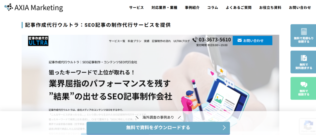 この度、弊社のSEO記事制作代行サービスの「記事作成代行ウルトラ」が、AXIA Marketing株式会社(大阪府大阪市 代表取締役:金田 大樹)におすすめのマーケティングサービスとしてご紹介いただけました。 「記事制作」とGoogle検索を行うと、1位に出てく... -