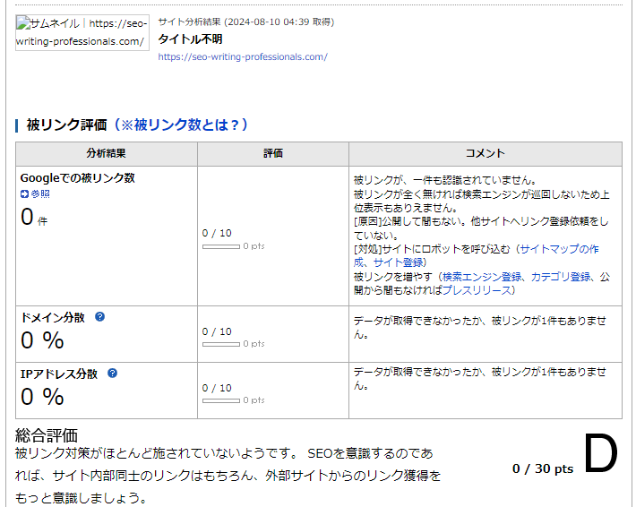 Online Broken Backlink Checkerドメイン評価(基準不明)