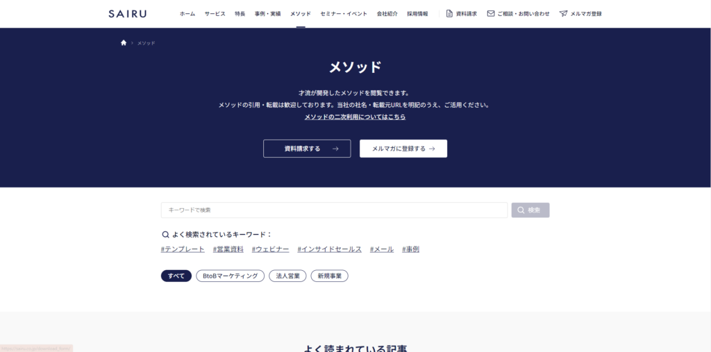SAIRUメソッドでは、BtoBマーケティングに役立つオリジナルのメソッドをオウンドメディア上で公開しています。