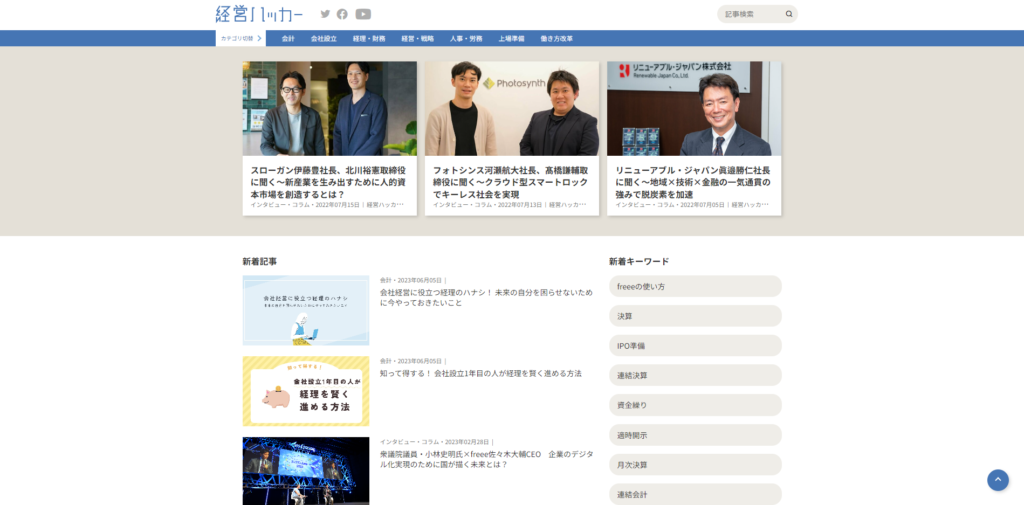 経営ハッカーは、クラウド会計ソフトのfreee株式会社が提供しているオウンドメディアです。
