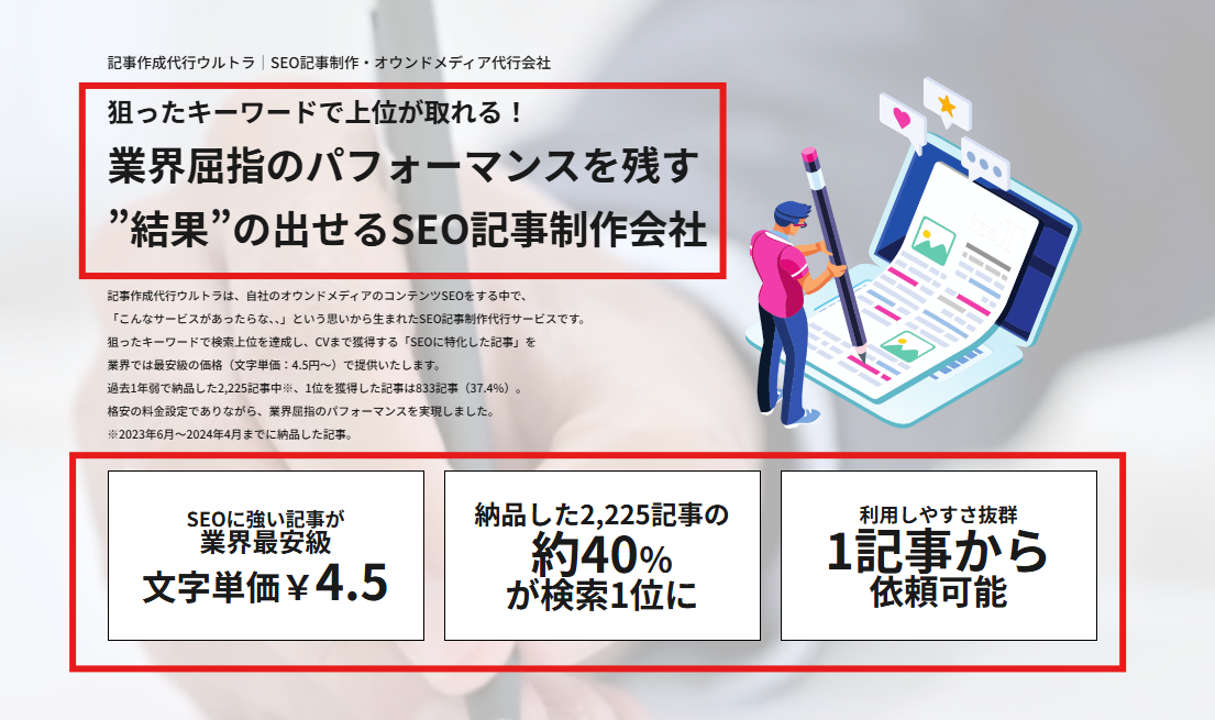 SEO記事制作代行で1位
