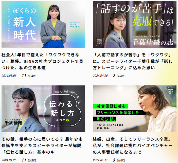読者が「この人の話を聞いてみたい」と直感的に思えるようなデザインで、記事のストーリー性を強調しているのが特徴です。