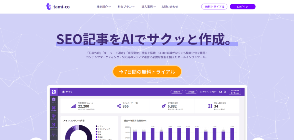 tami-coは、株式会社BizSamuraiが提供するAIを用いた記事作成やキーワード選定の支援ツールです。