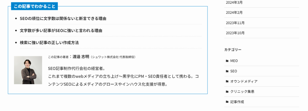 E-E-A-Tの観点からも、著者/監修者情報を示すことは効果的ですよ。
