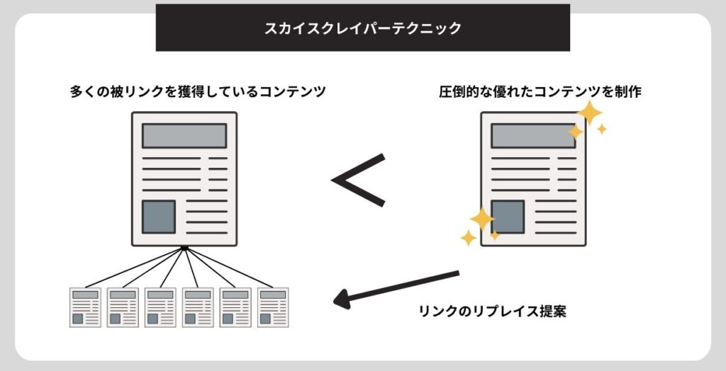 なお、スカイスクレイパーテクニックについて詳しく知りたい方は、「効果的な被リンク獲得テクニックースカイスクレイパーテクニック」を参考にしてください。