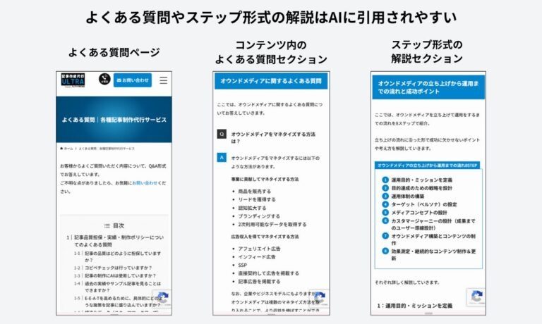 具体的には見出し(h2・h3)の階層が明確で、質問と回答の関係が整理されているほど、AIに内容を正確に理解されやすくなります。