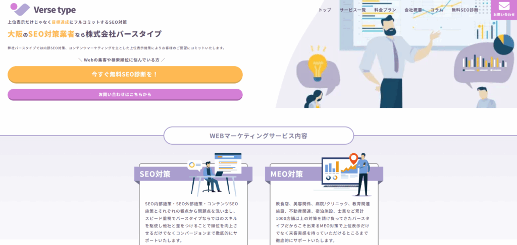 | 株式会社バースタイプ | 大阪府 | ・検索順位だけでなく売上・CVアップまで見据えたSEO支援 ・SEOコンサルティングが月額10万円〜とリーズナブル ・MEO・広告運用・サイト制作にも対応&「即レス」のスピード対応が魅力 |