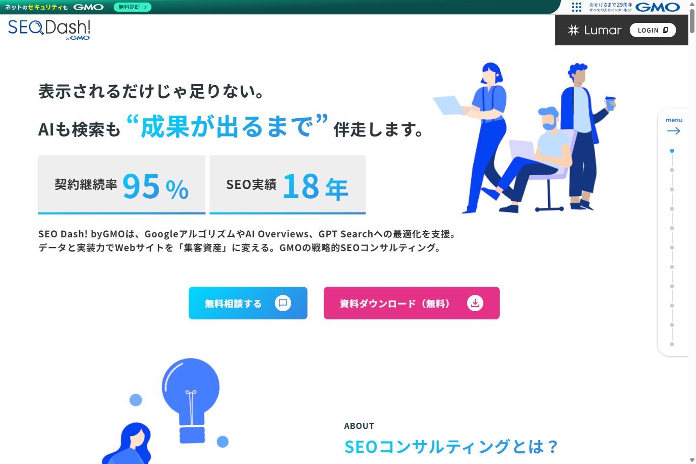 SEOは長期的な取り組みが前提となる施策のため、信頼できる会社と継続的に伴走できるかどうかも大切なポイントです。