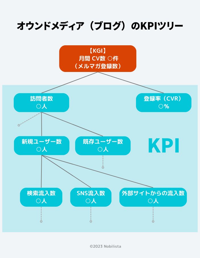 要素を細かく分けることで、KGI達成に向けて改善すべき数値や取るべきアクションがわかりやすくなっていることがわかるでしょう。